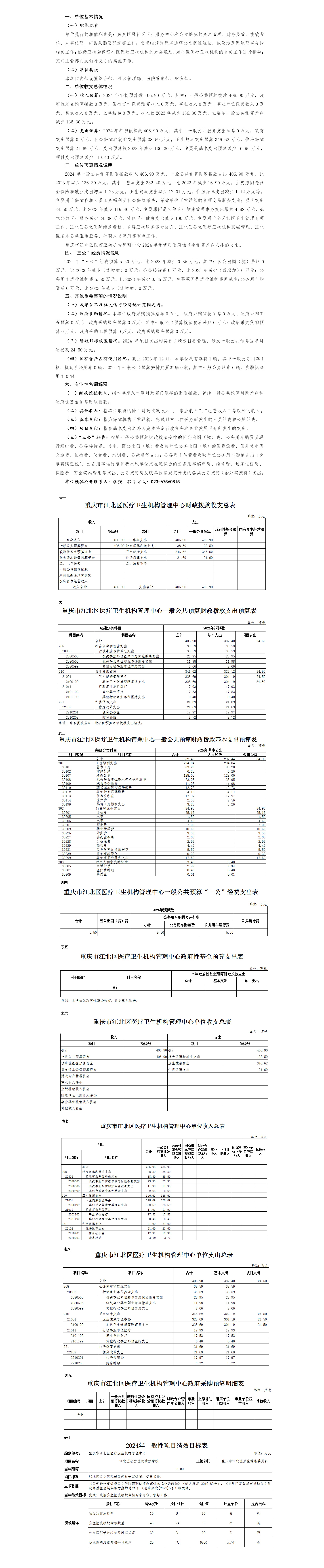 重慶市江北區醫療衛生機構管理中心2024年單位預算情況說明