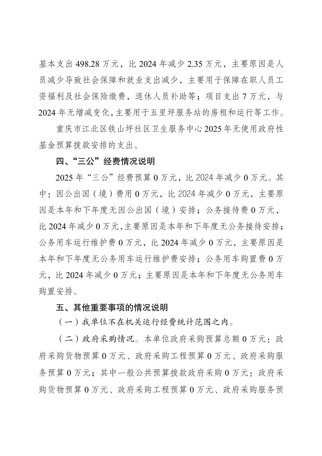 重慶市江北區鐵山坪社區衛生服務中心2025年單位預算情況說明
