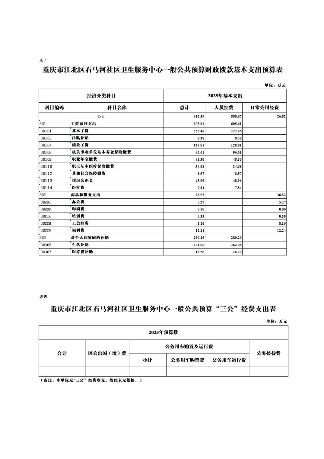 重慶市江北區石馬河社區衛生服務中心2025年度單位預算情況說明