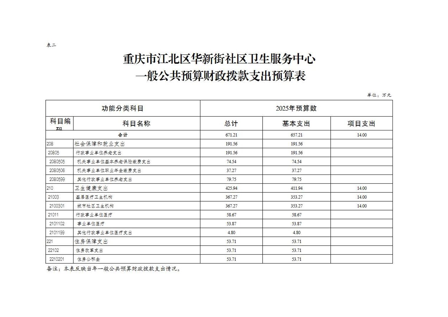 重慶市江北區(qū)華新街社區(qū)衛(wèi)生服務(wù)中心2025年單位預(yù)算情況說明