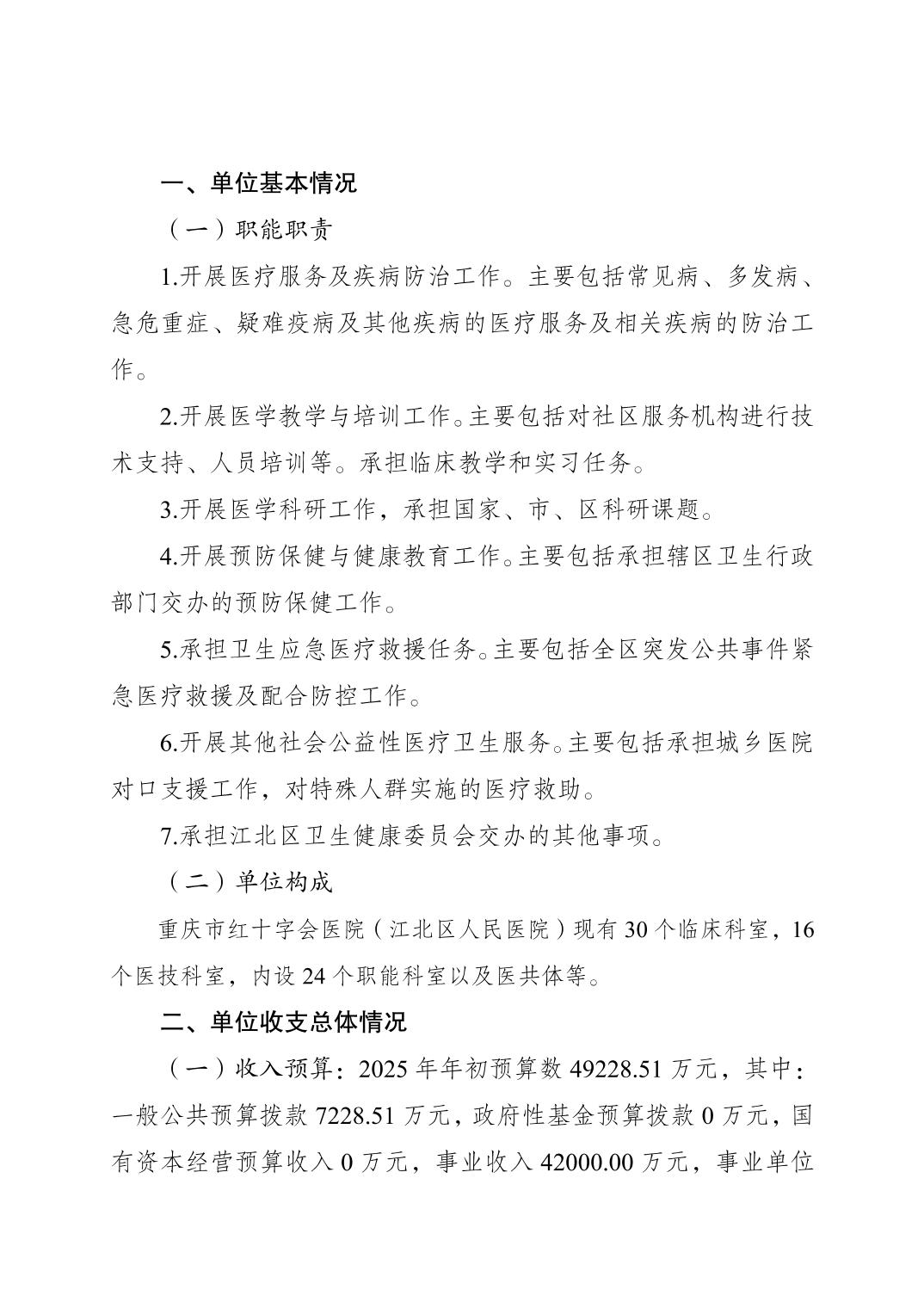 重慶市紅十字會醫院(江北區人民醫院)2025年單位預算情況說明