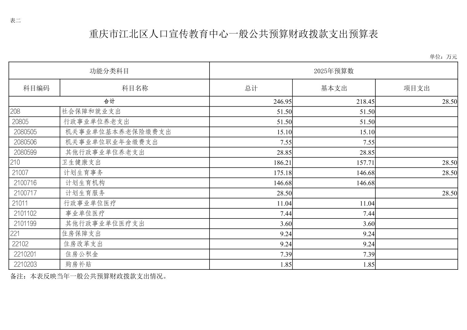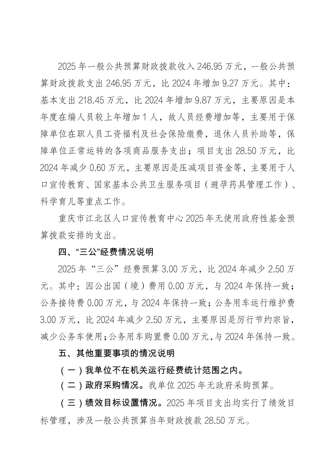 重慶市江北區人口宣傳教育中心2025年度單位預算情況說明