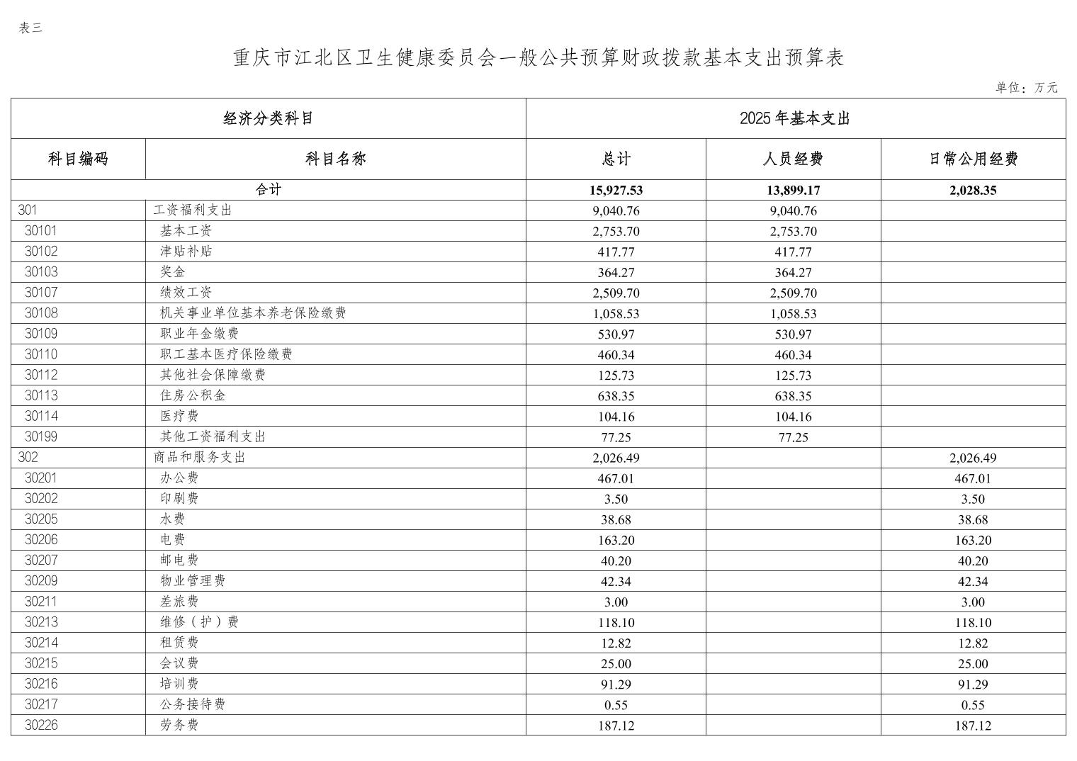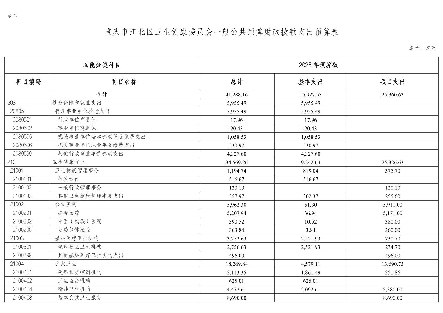重慶市江北區衛生健康委員會2025年部門預算情況說明