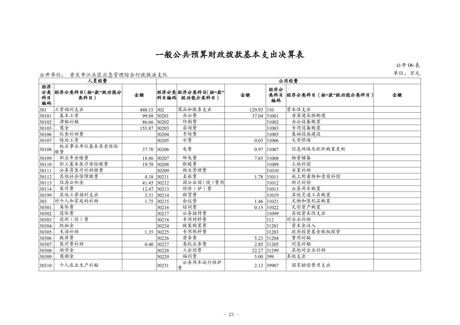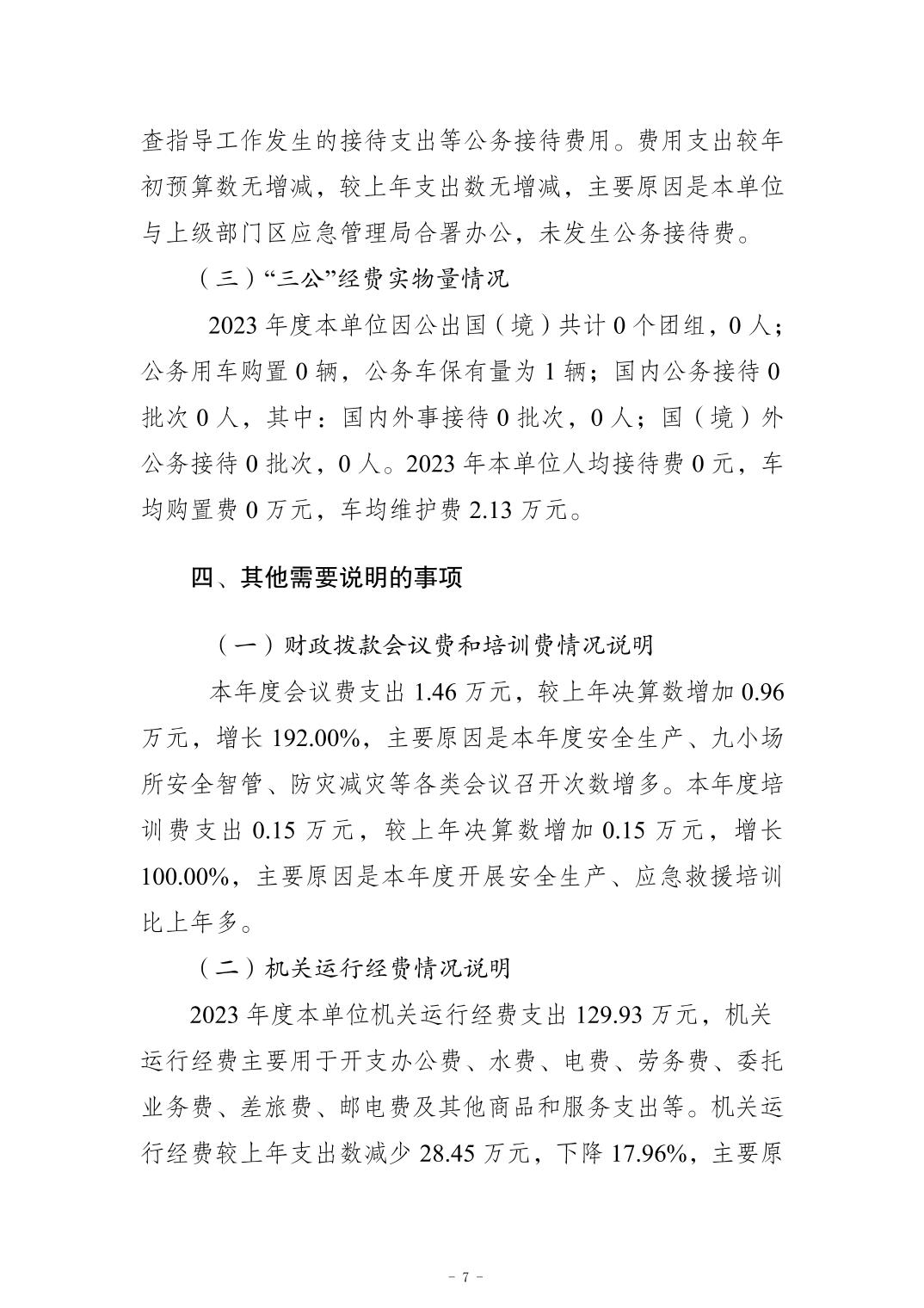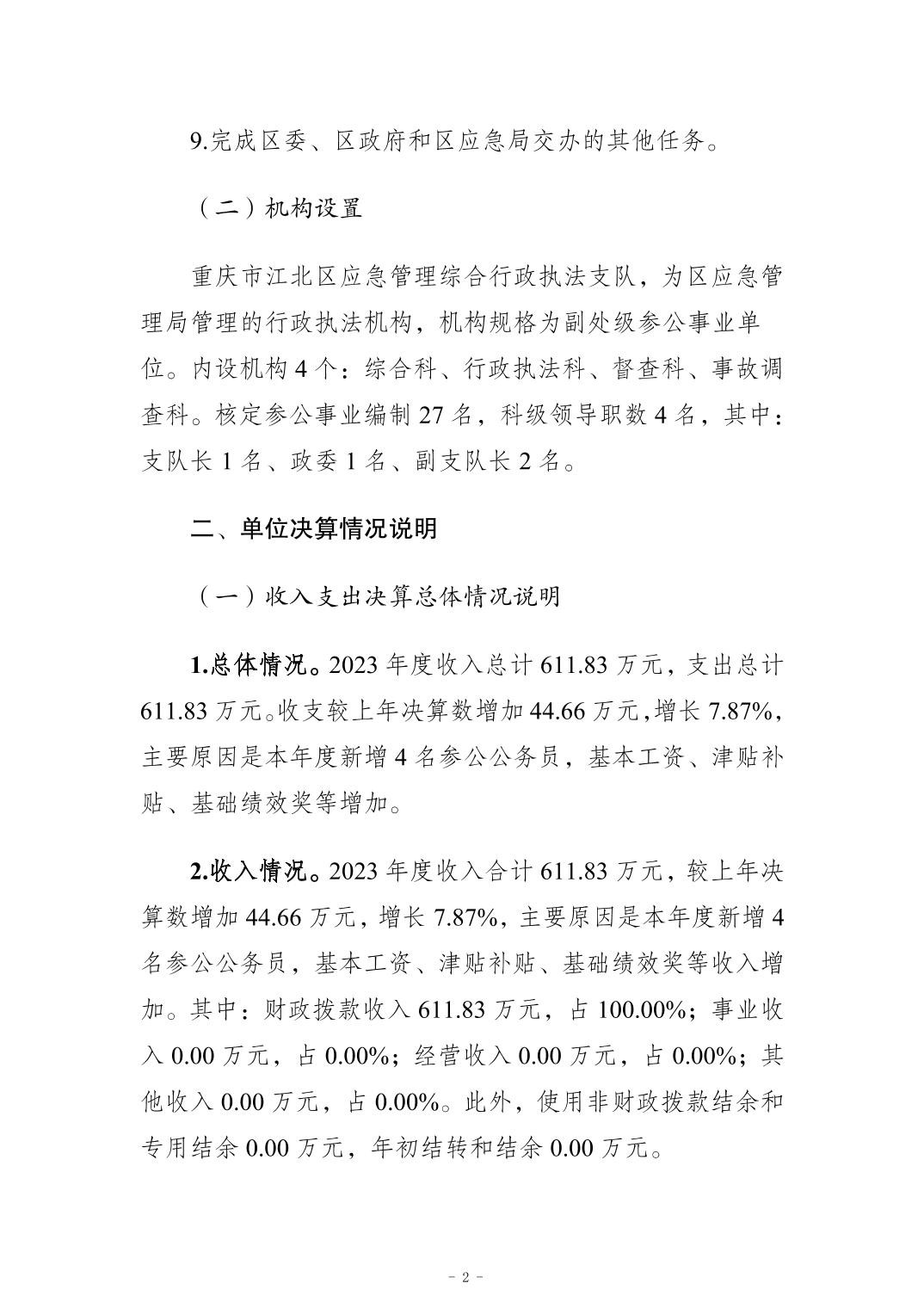 重慶市江北區應急管理綜合行政執法支隊2023年度決算公開說明
