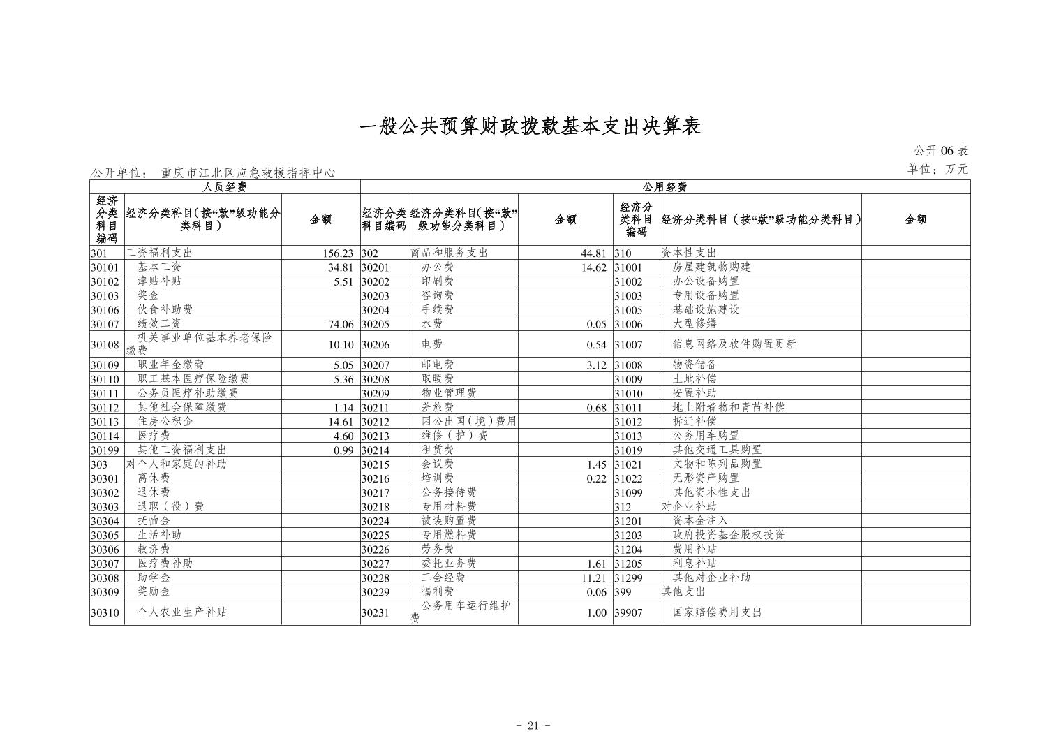 重慶市江北區應急救援指揮中心2023年度決算公開說明