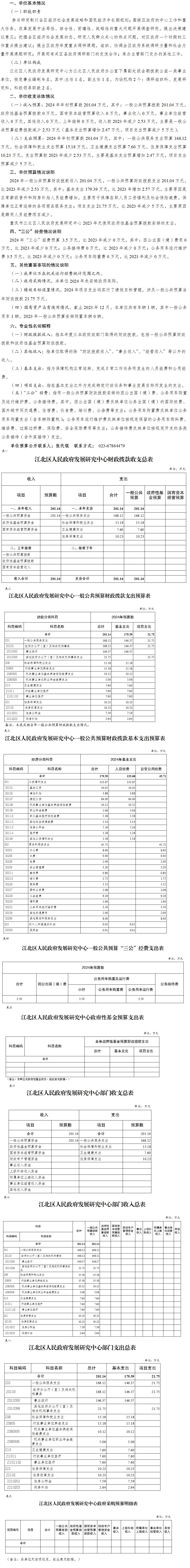 重慶市江北區(qū)人民政府發(fā)展研究中心2024年單位預算情況說明