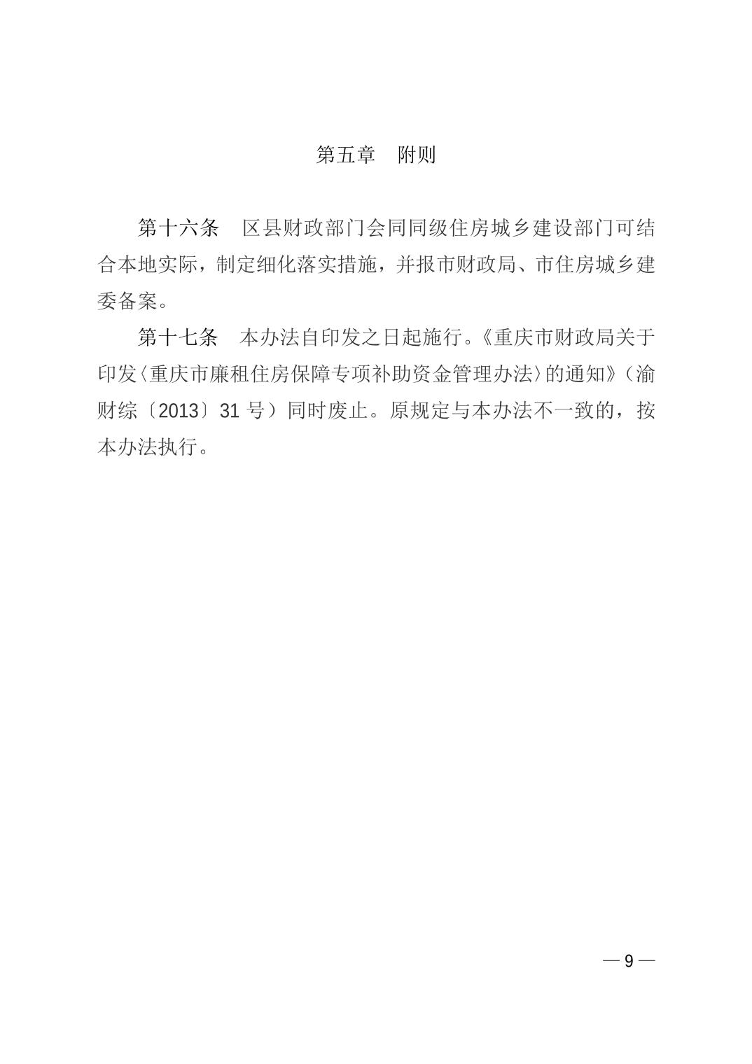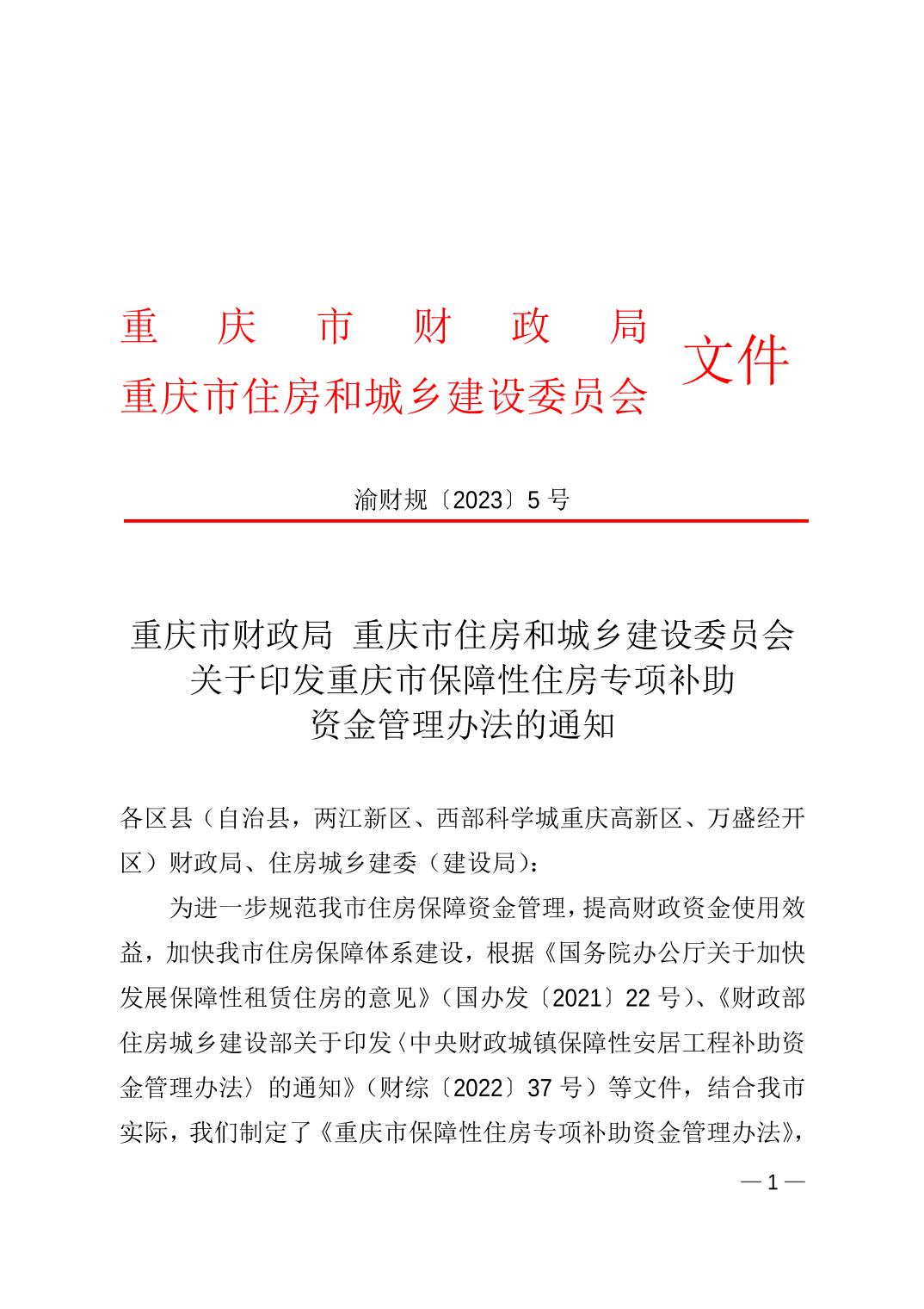重慶市財(cái)政局 重慶市住房和城鄉(xiāng)建設(shè)委員會(huì)關(guān)于印發(fā)重慶市保障性住房專(zhuān)項(xiàng)補(bǔ)助資金管理辦法的通知