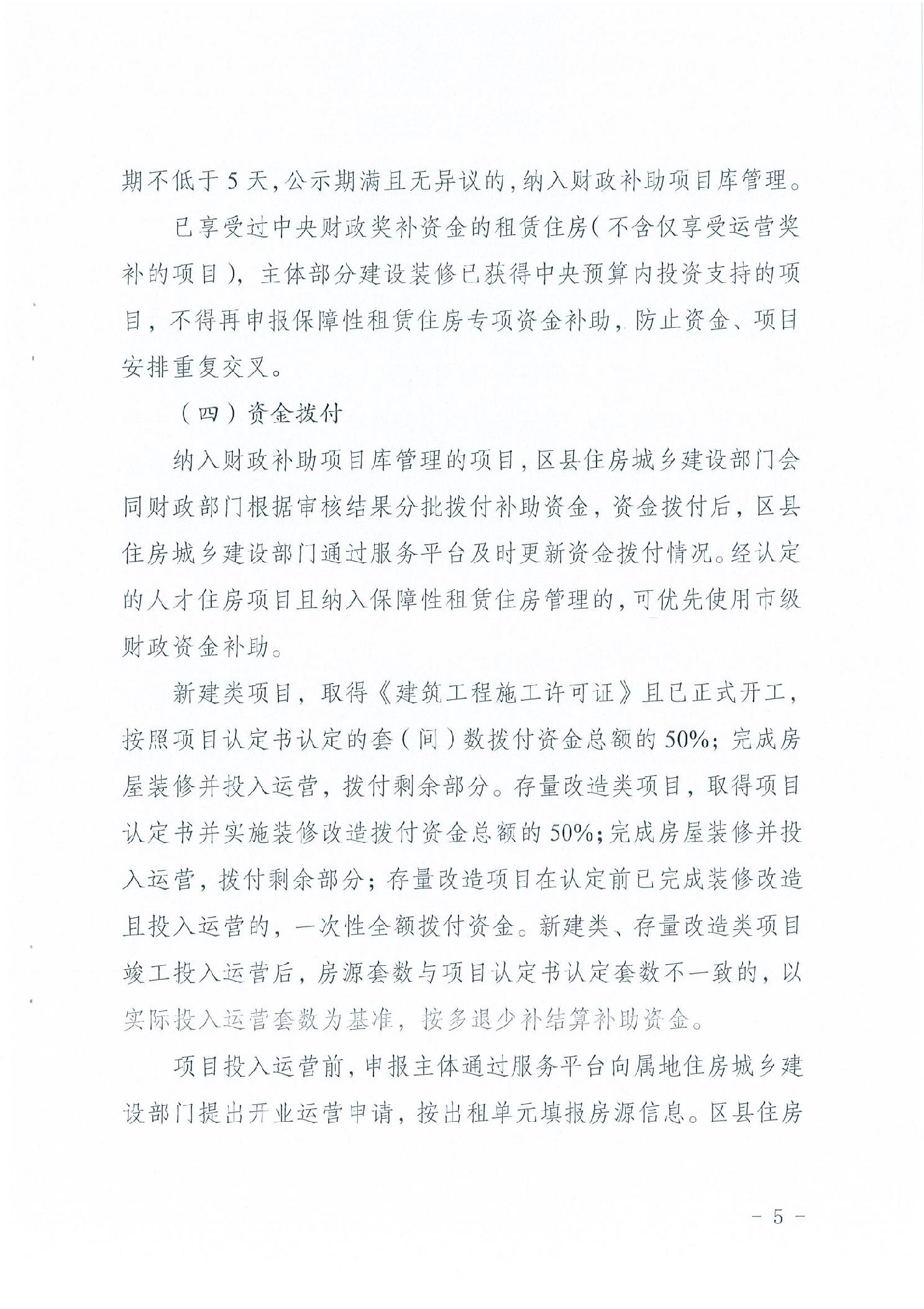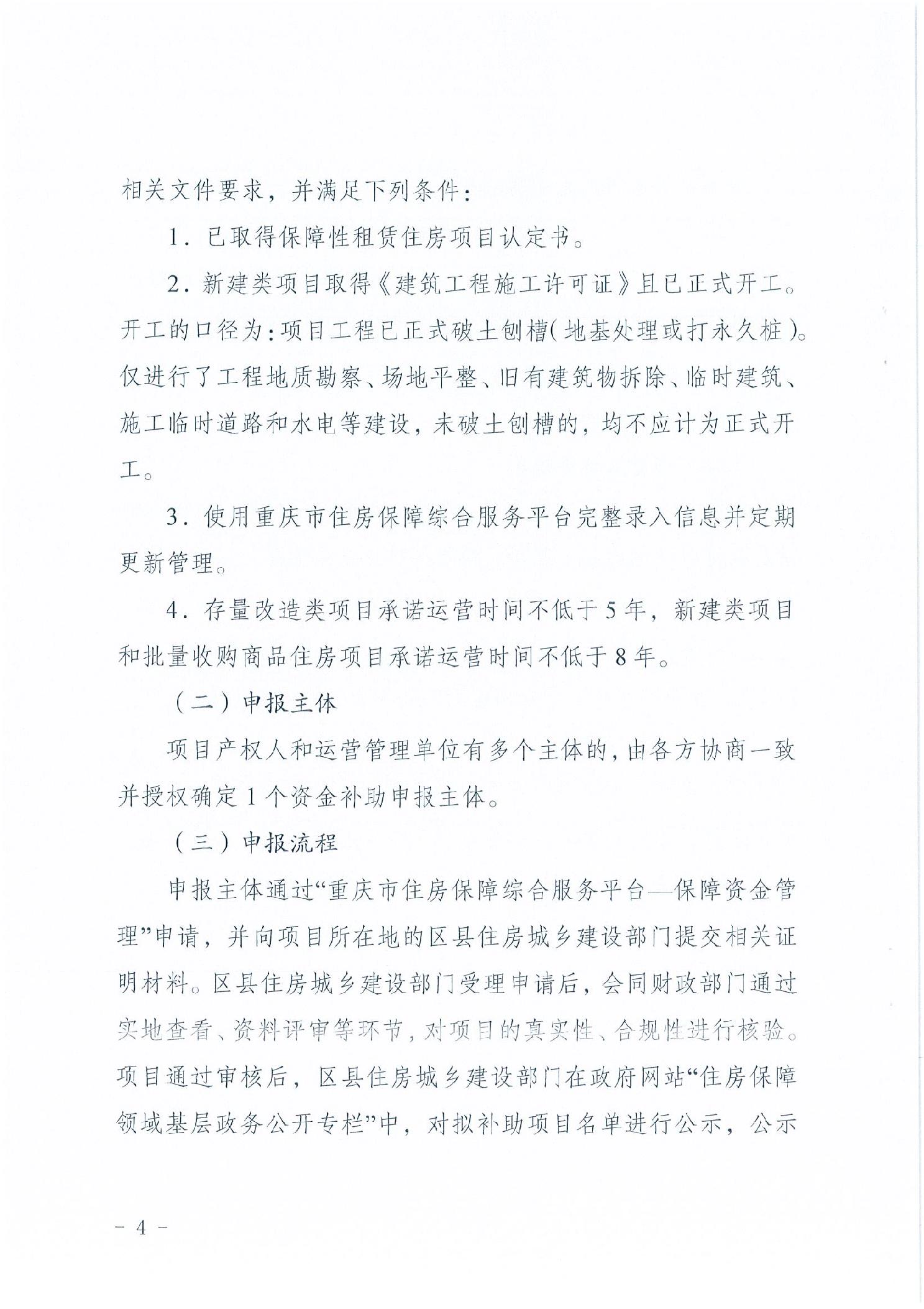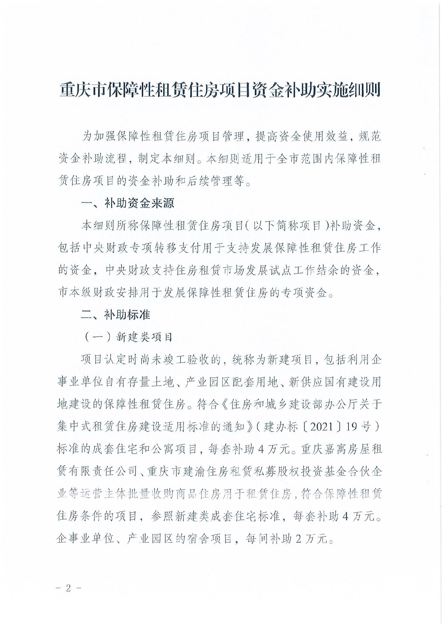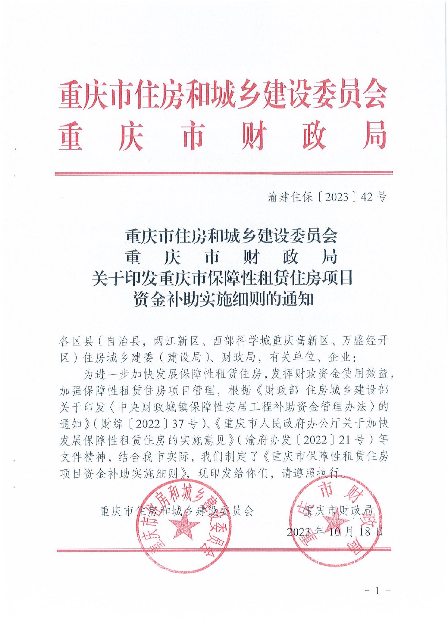 重慶市住房和城鄉建設委員會 重慶市財政局 關于印發重慶市保障性租賃住房項目資金補助實施細則的通知