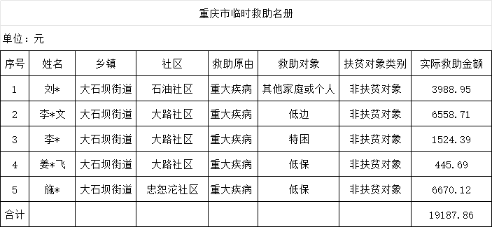 江北區(qū)大石壩街道2025年10月臨時(shí)救助花名冊(cè)