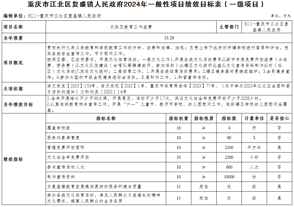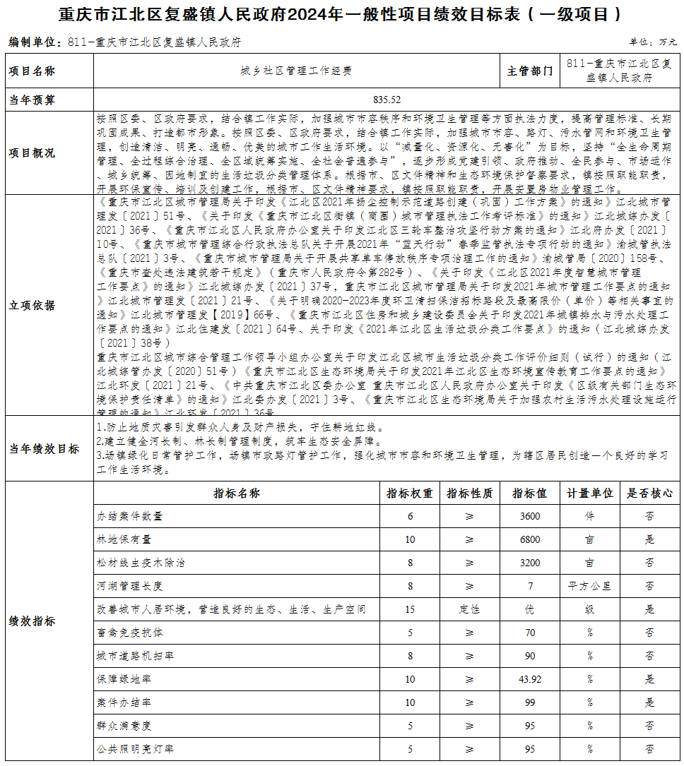 重慶市江北區復盛鎮人民政府 2024年部門預算情況說明
