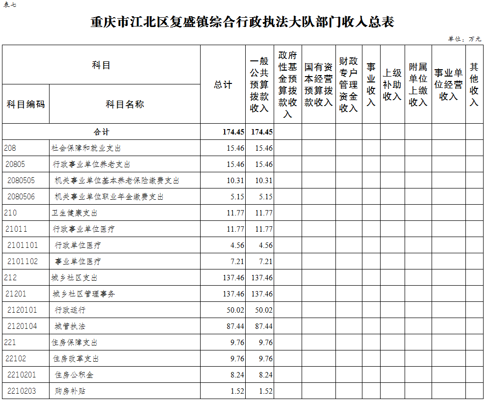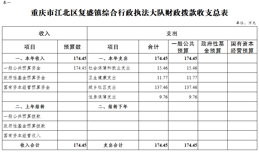 重慶市江北區復盛鎮綜合行政執法大隊 2024年單位預算情況說明