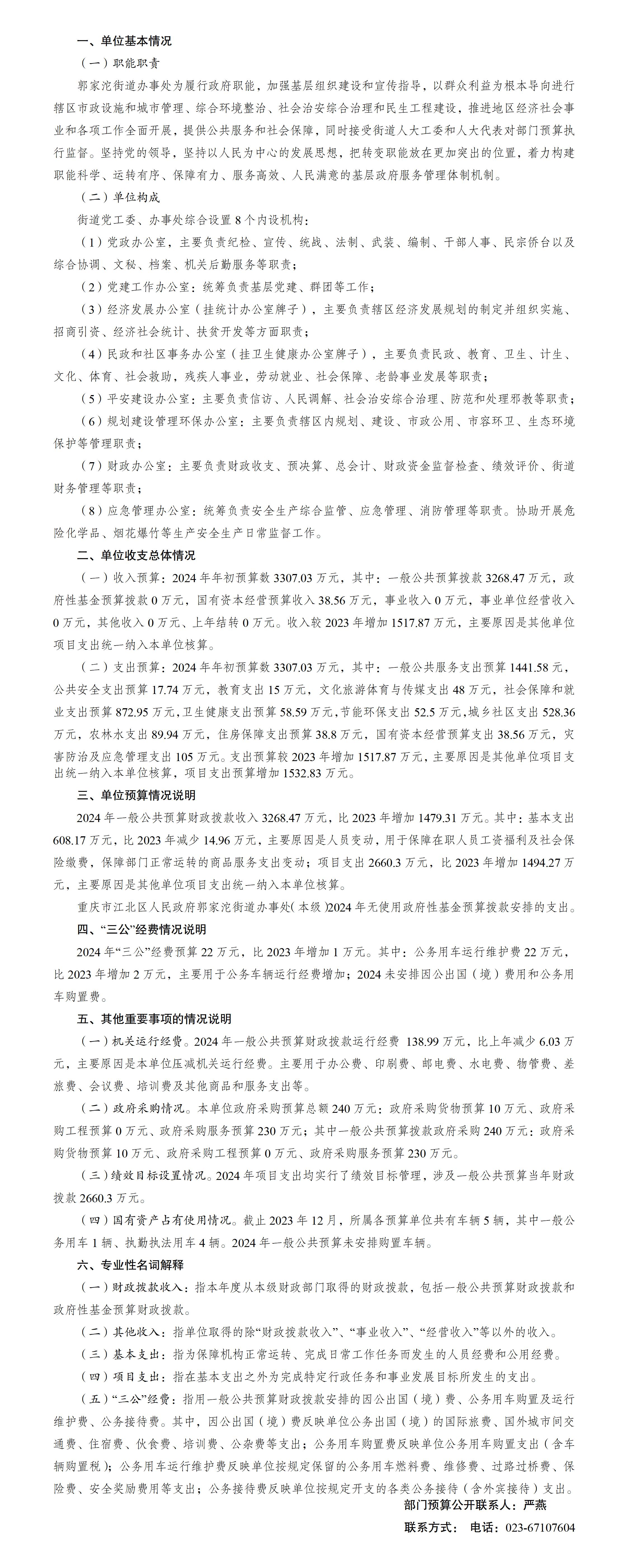 重慶市江北區人民政府郭家沱街道辦事處(本級)2024年單位預算情況說明