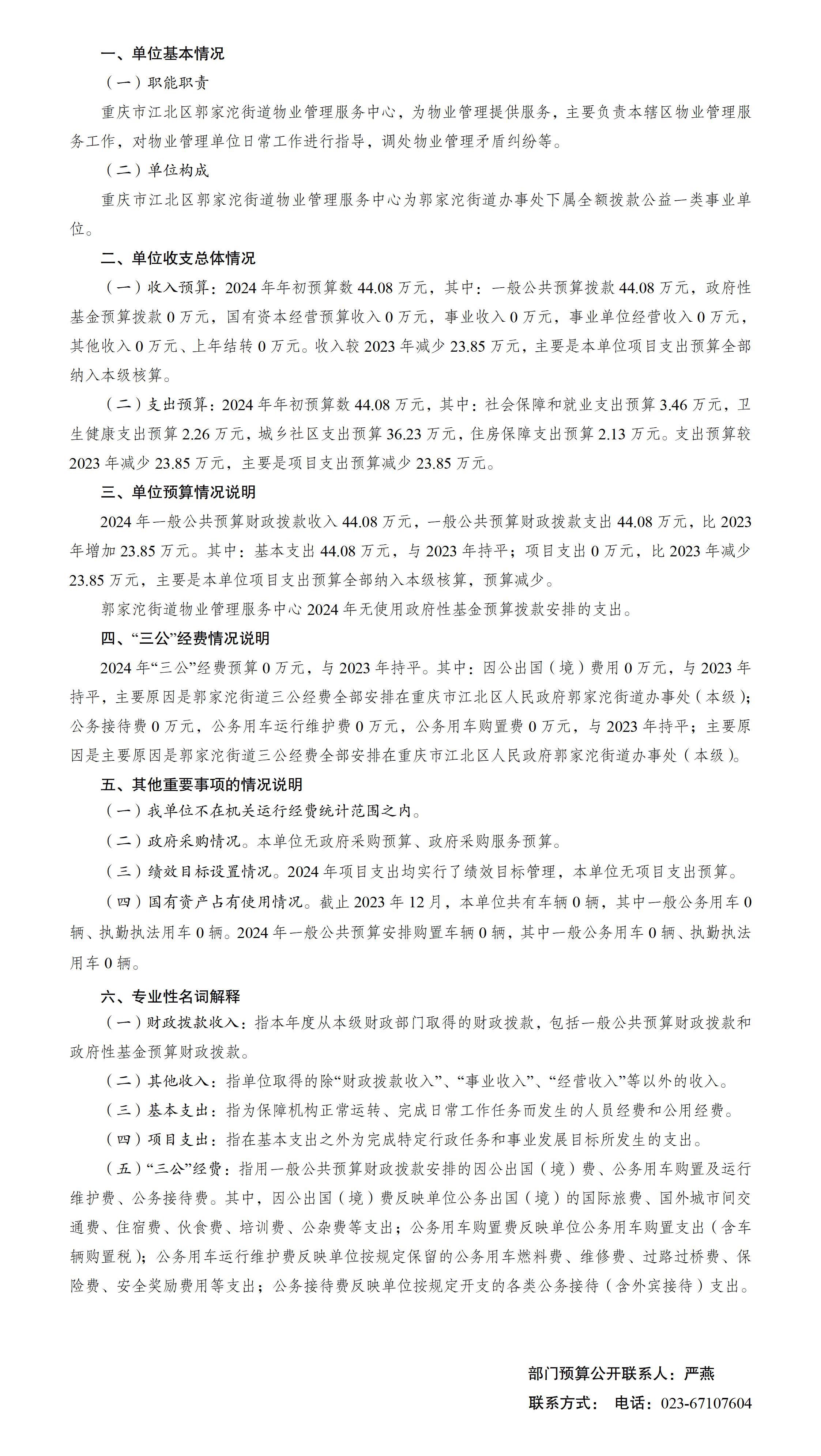 重慶市江北區(qū)郭家沱街道物業(yè)管理服務(wù)中心2024年單位預(yù)算情況說明