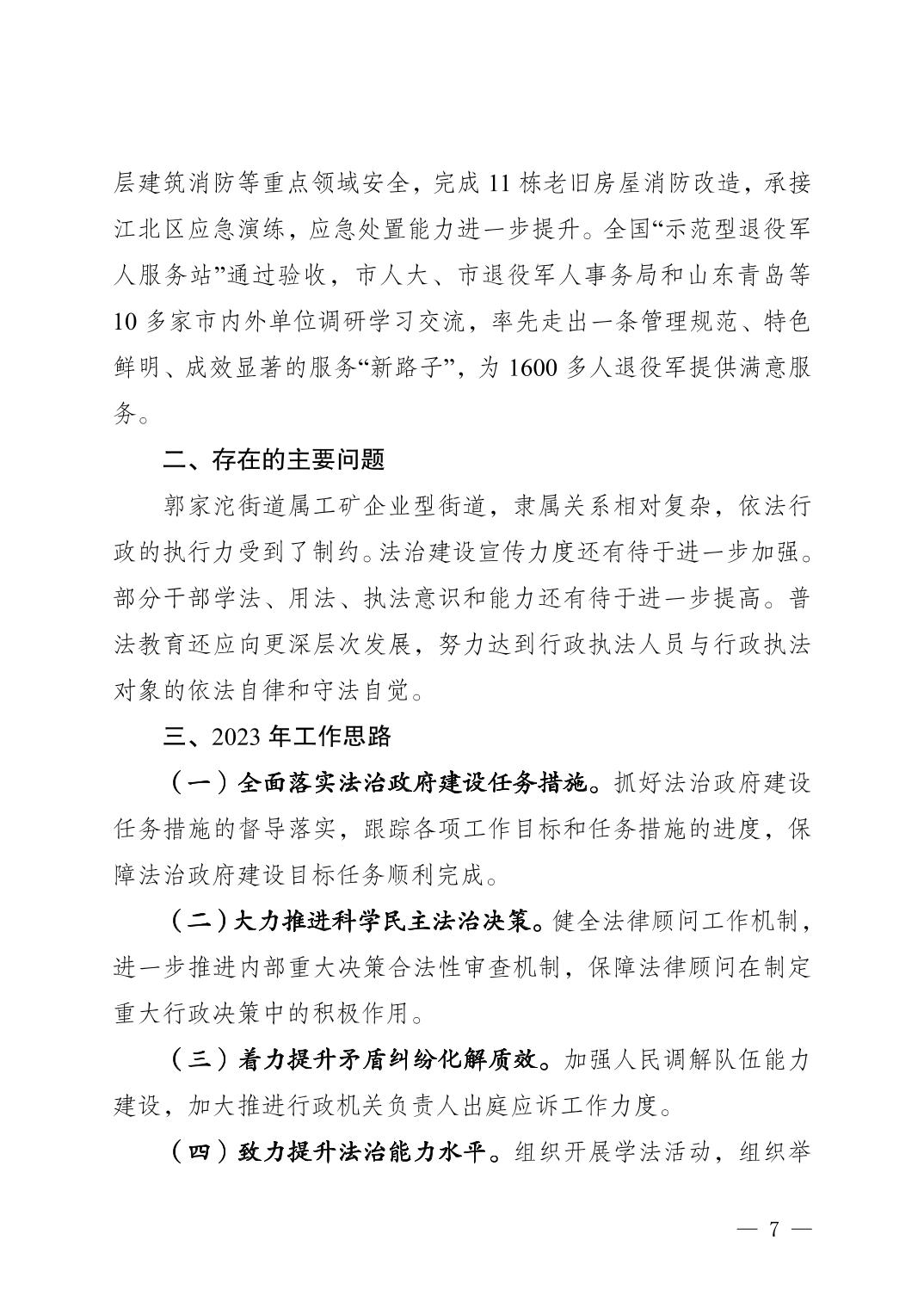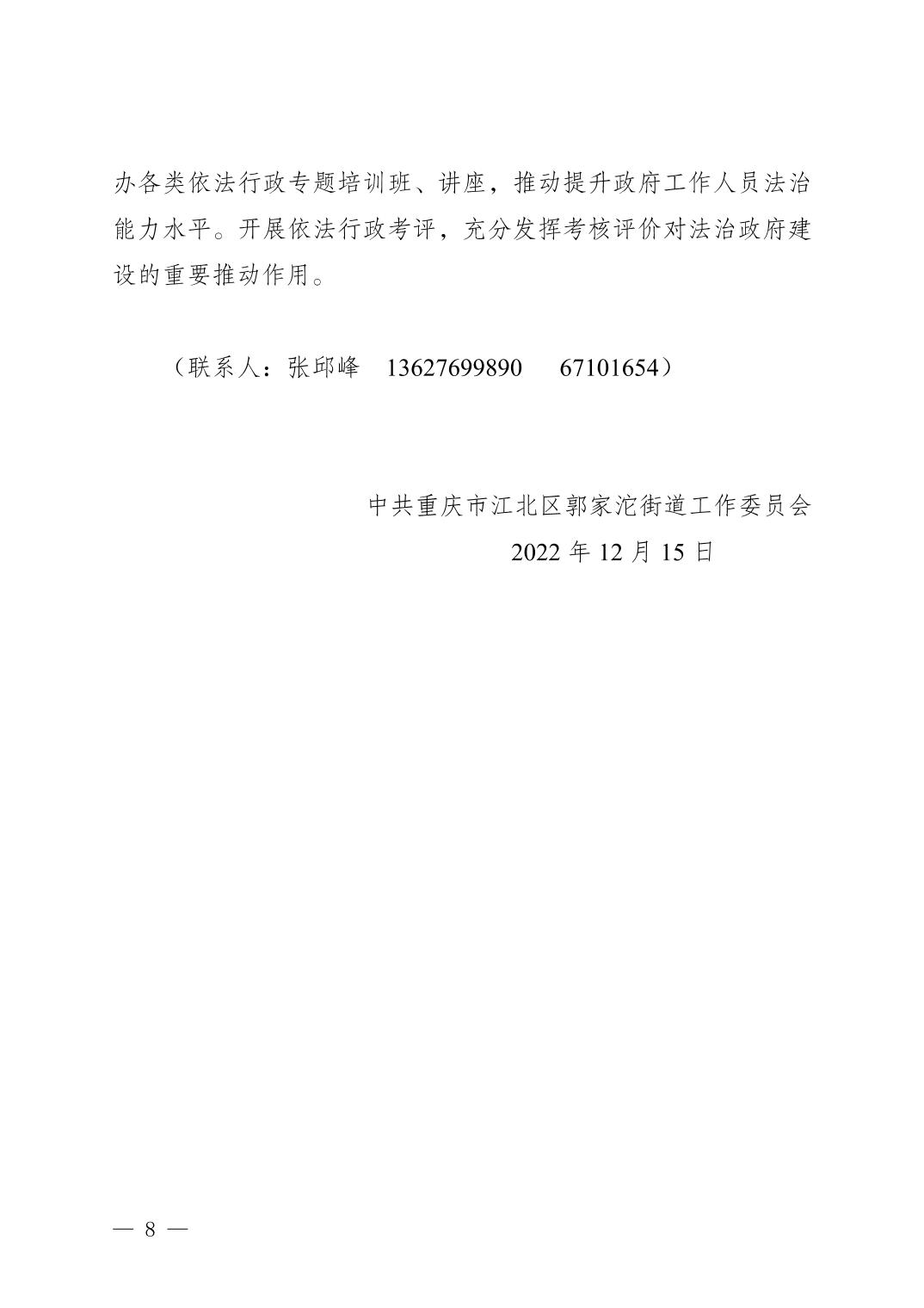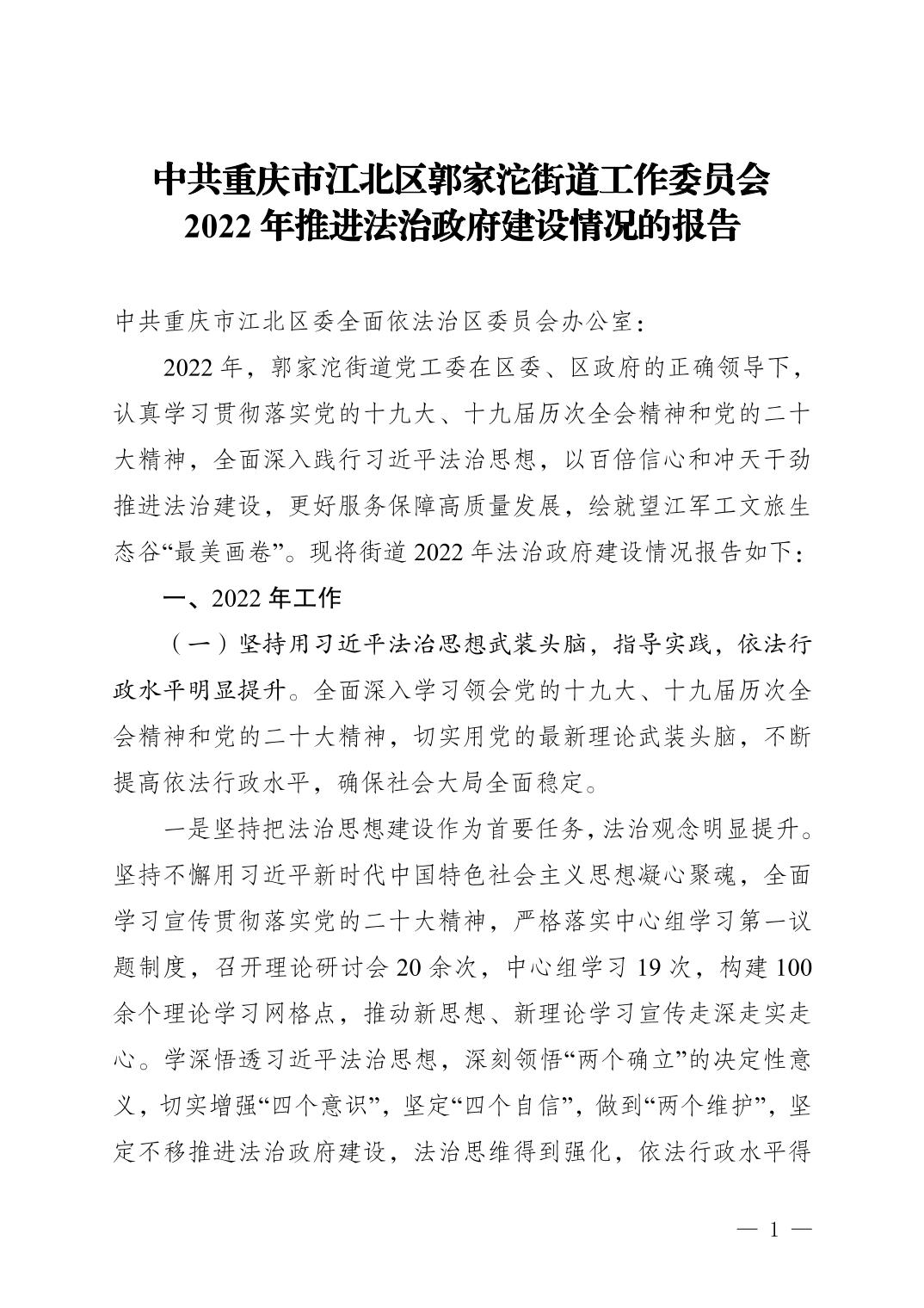 中共重慶市江北區郭家沱街道工作委員會 2022年推進法治政府建設情況的報告