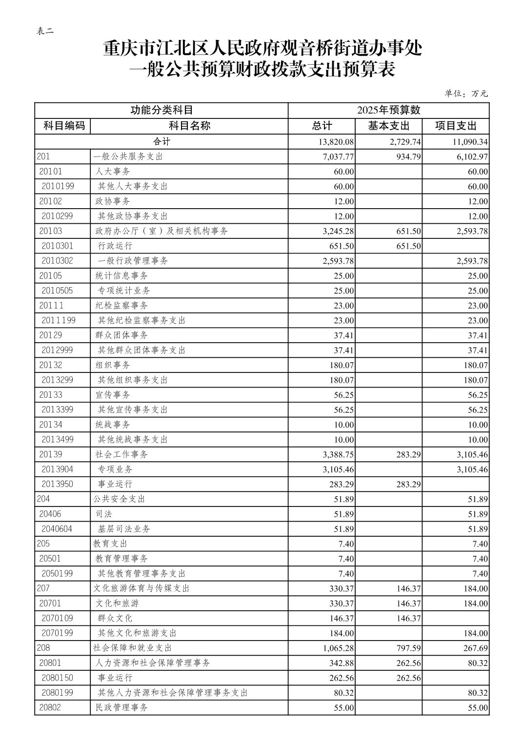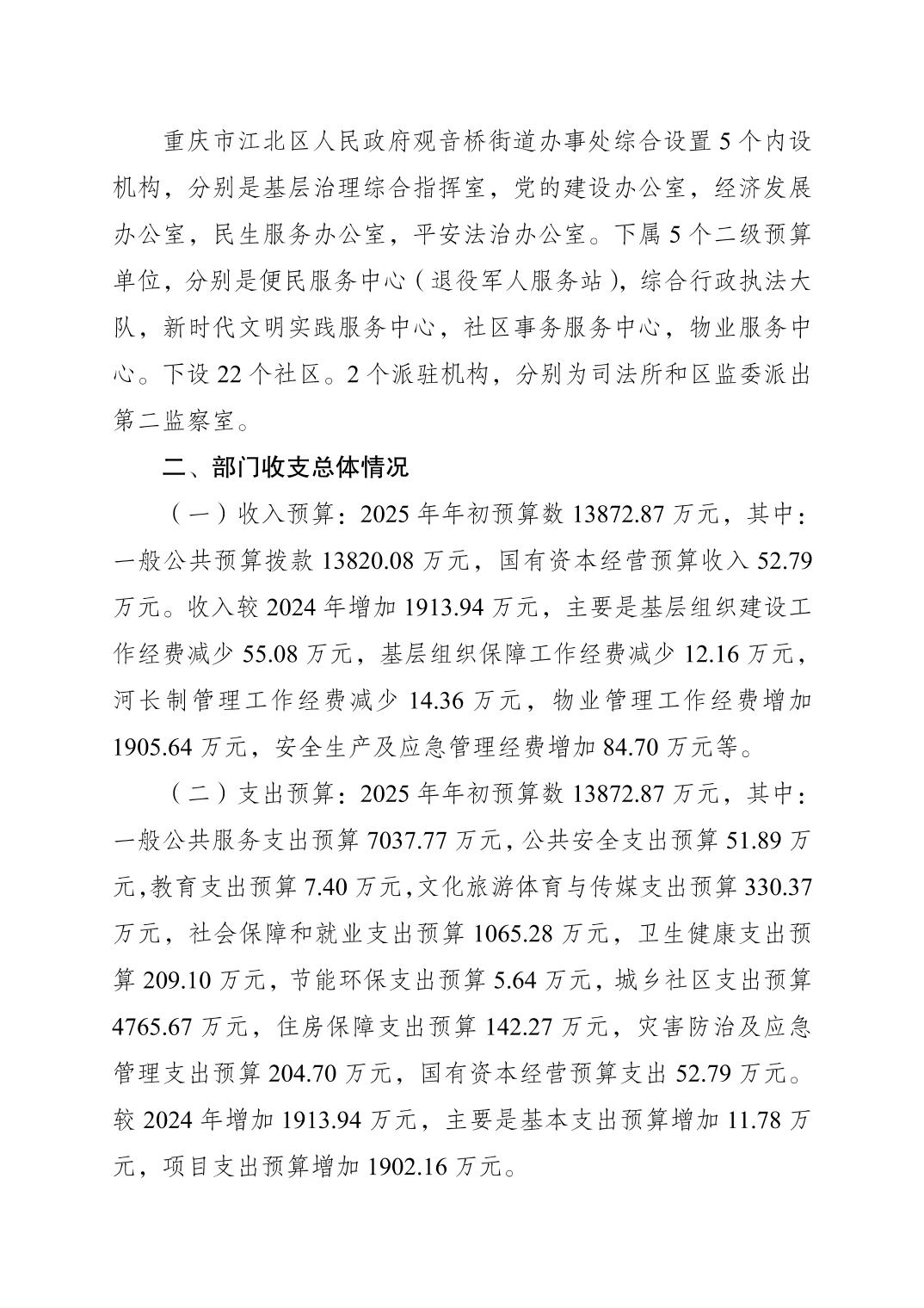 重慶市江北區人民政府觀音橋街道辦事處2025年部門預算情況說明