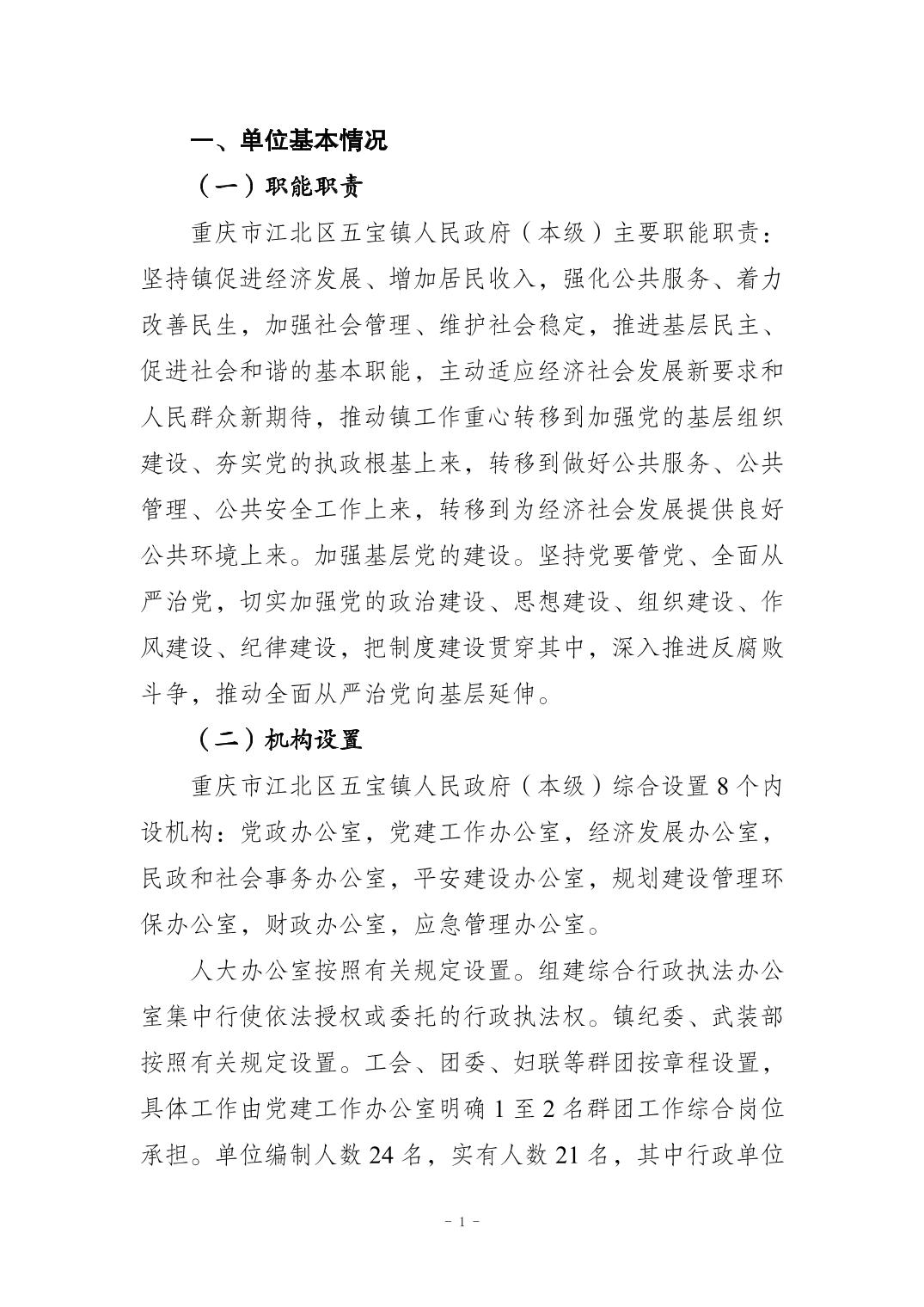 重慶市江北區五寶鎮人民政府(本級)2023年度單位決算情況說明