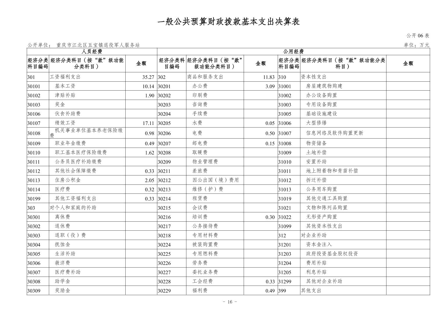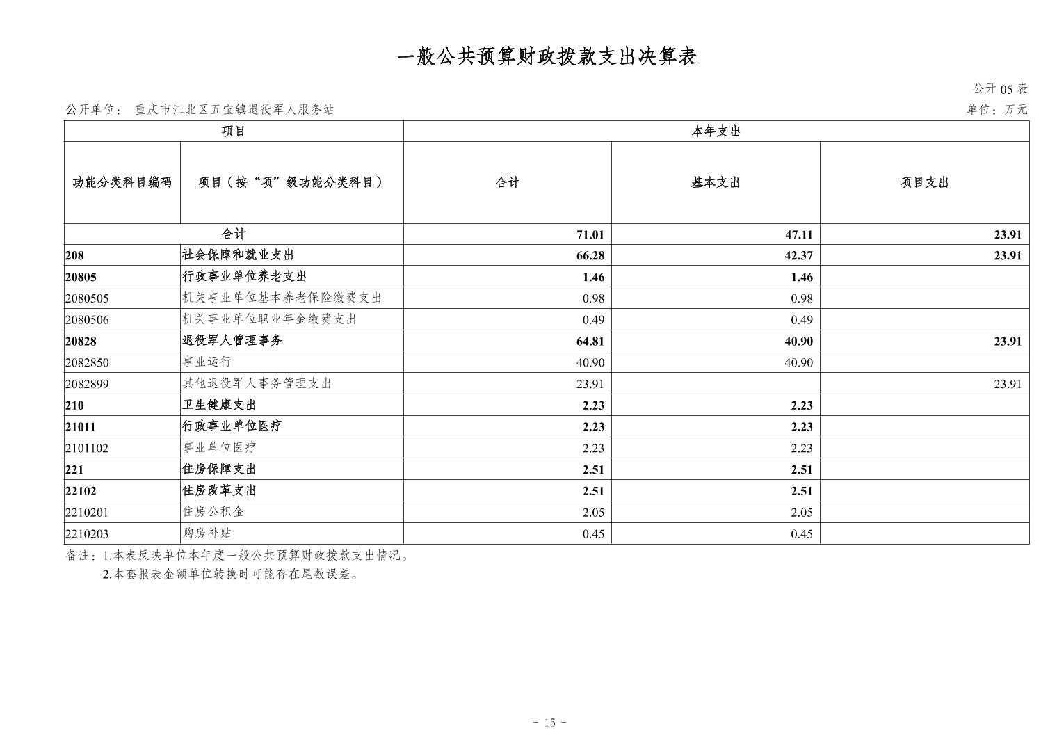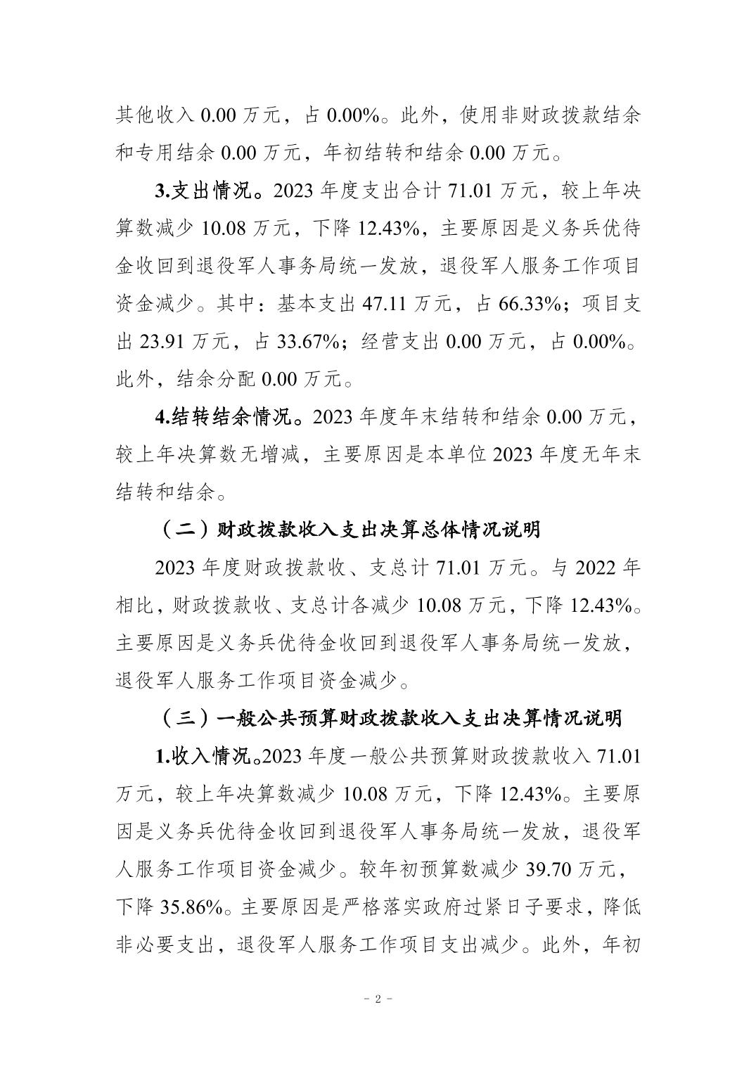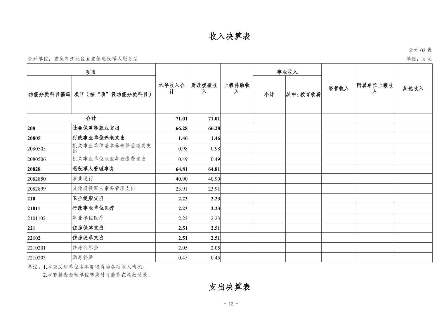 重慶市江北區五寶鎮退役軍人服務站2023年度單位決算情況說明