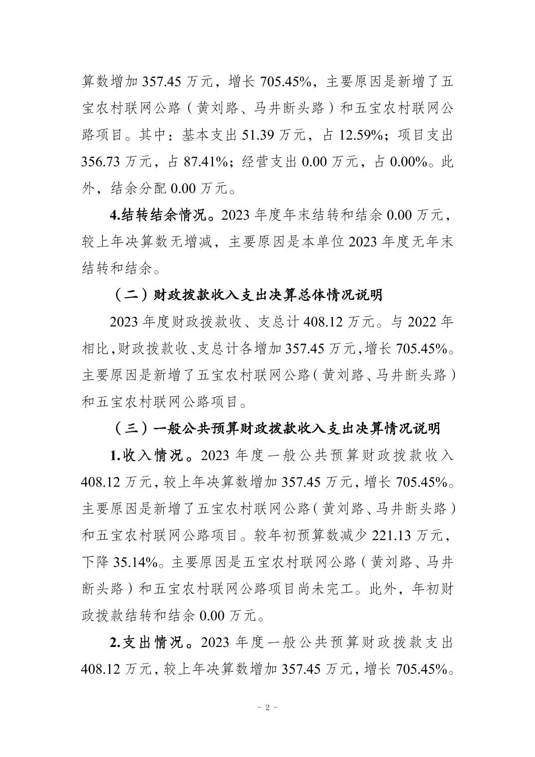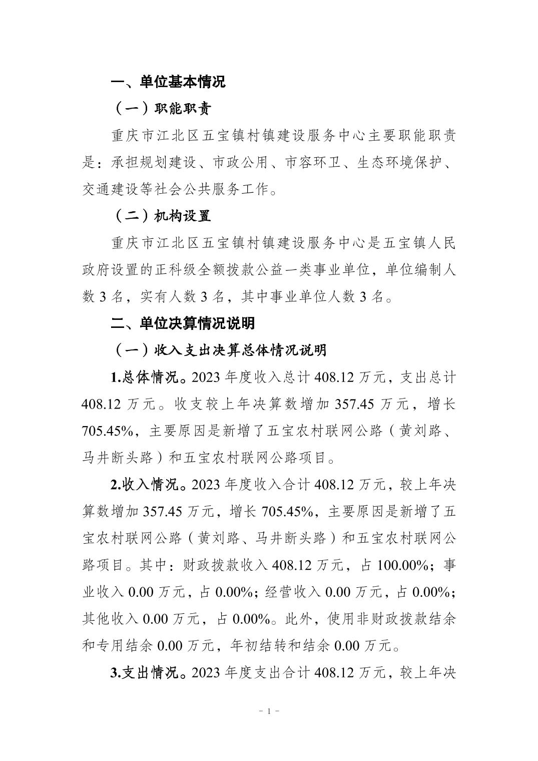 重慶市江北區(qū)五寶鎮(zhèn)村鎮(zhèn)建設(shè)服務(wù)中心2023年度單位決算情況說明