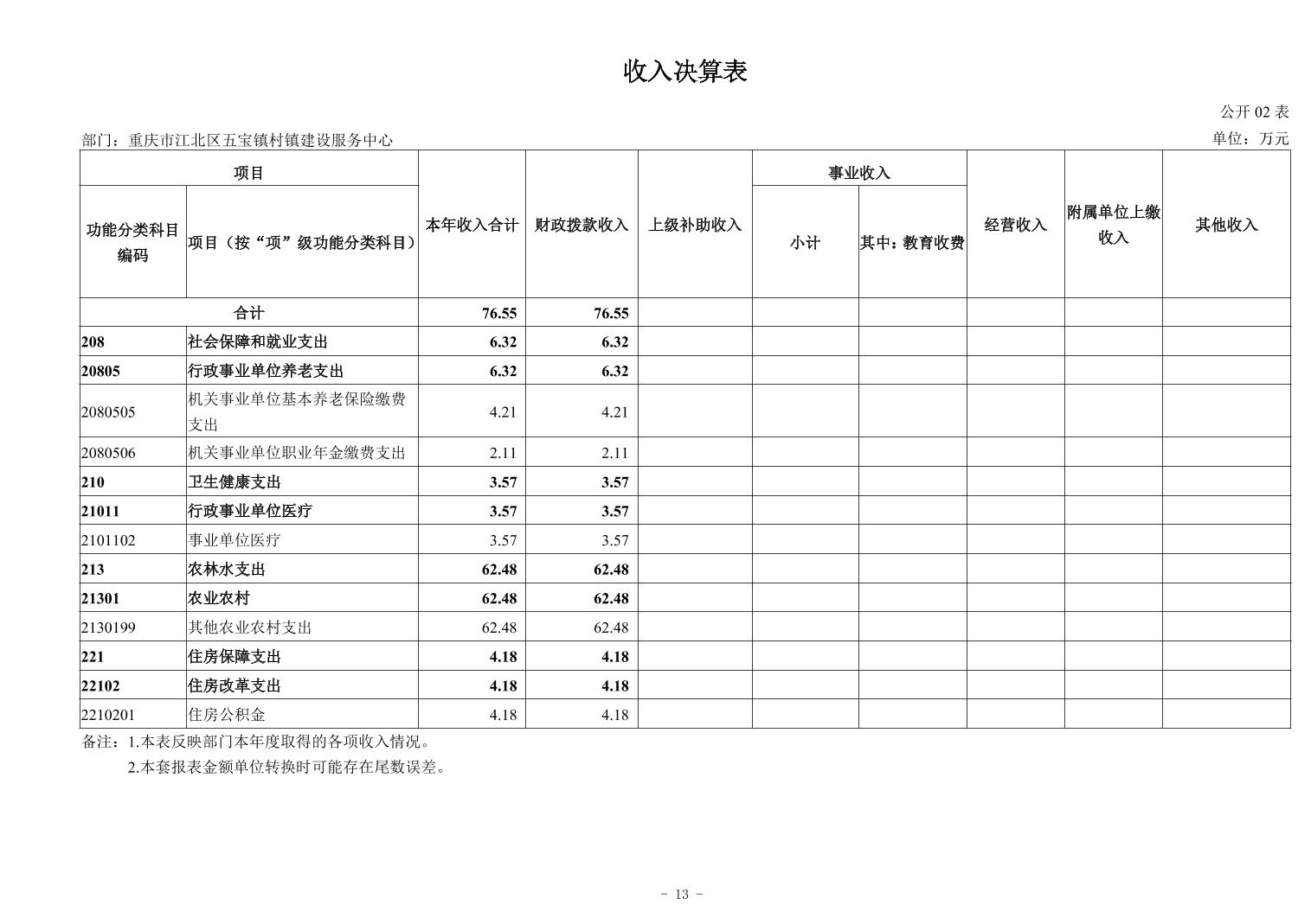 重慶市江北區五寶鎮村鎮建設服務中心2024年度單位決算情況說明