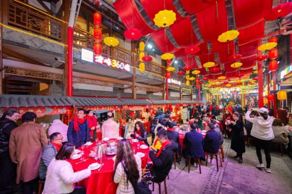 △1月23日晚,“渝味360碗”美食街區開街儀式暨“萬名華僑華人在重慶過大年”活動在江北區鴻恩坊舉行?