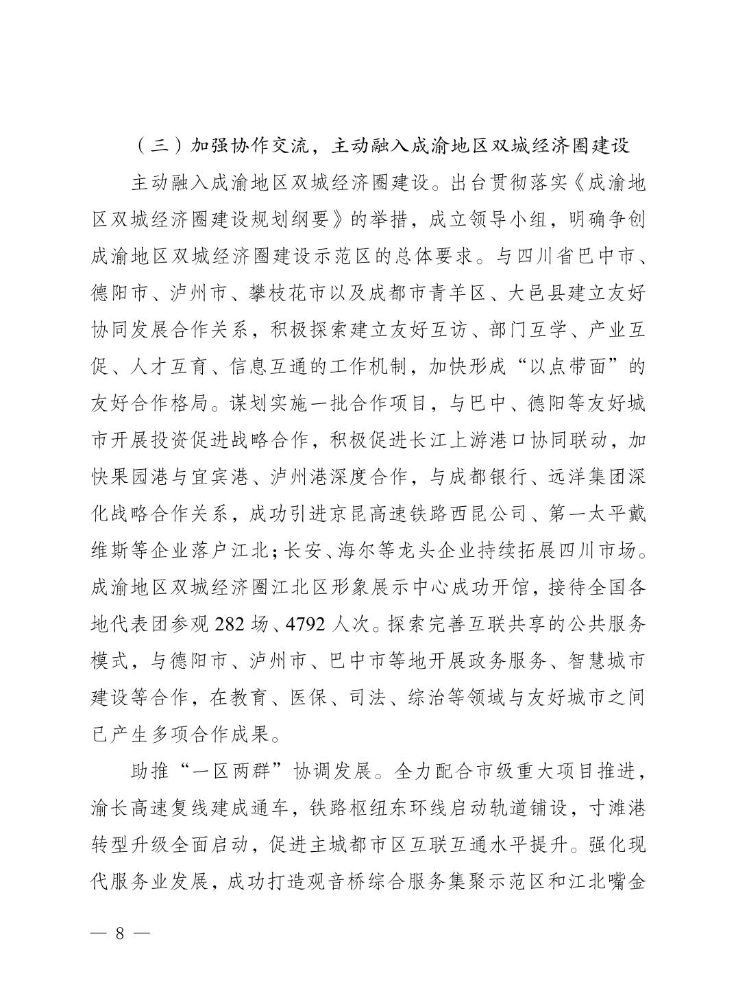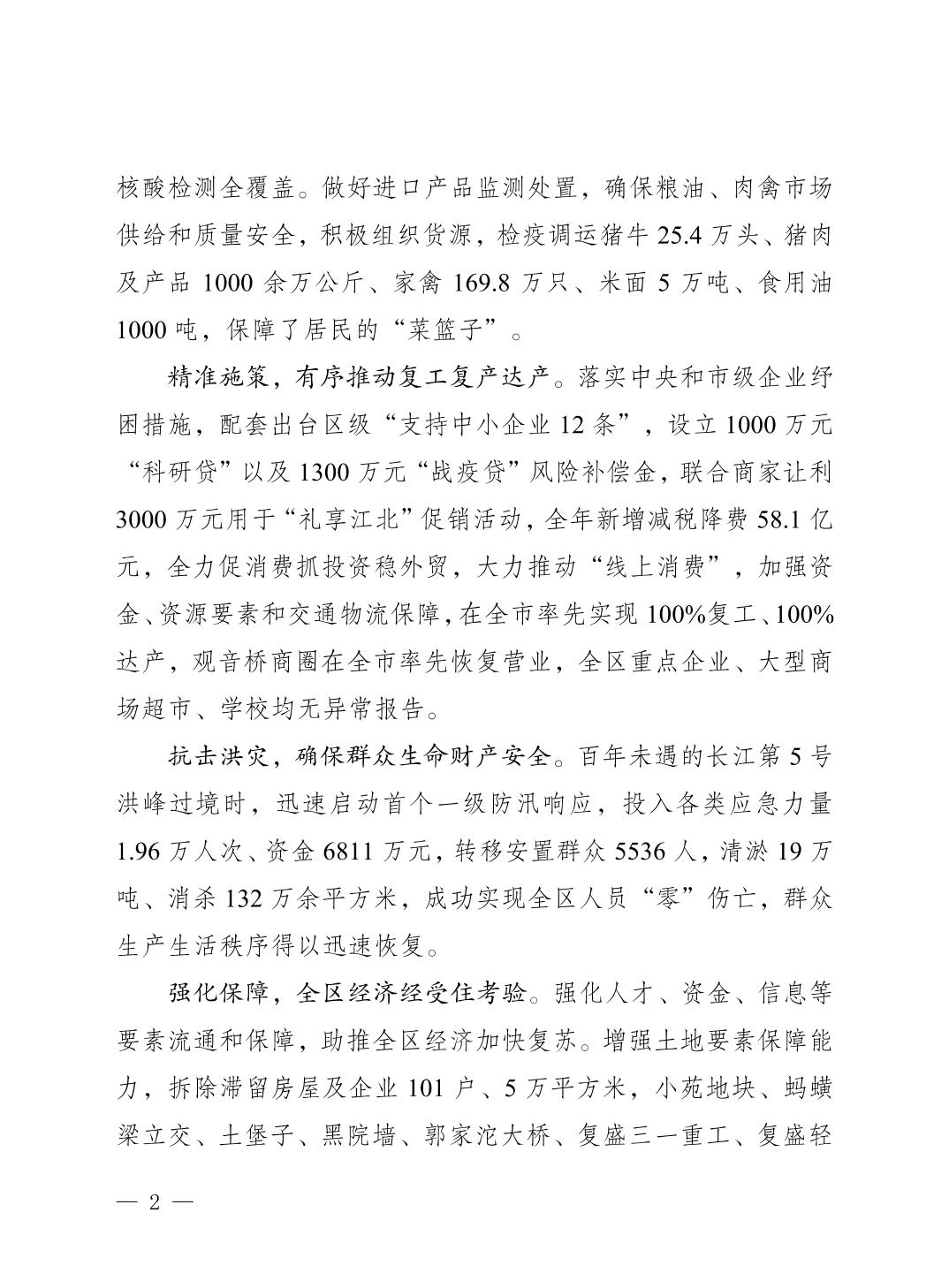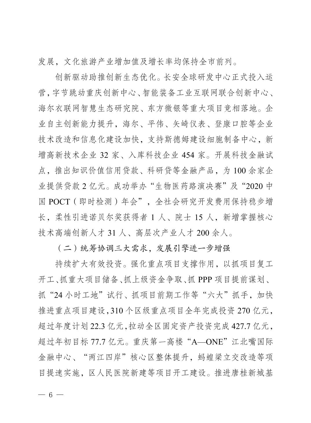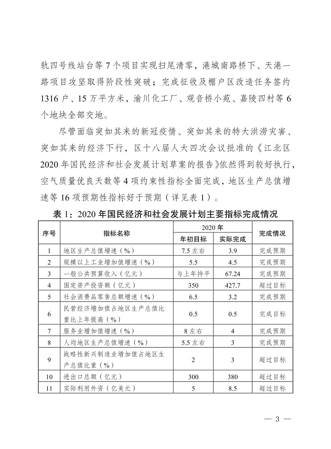 關于重慶市江北區2020年國民經濟和社會發展計劃執行情況及2021年計劃草案的報告